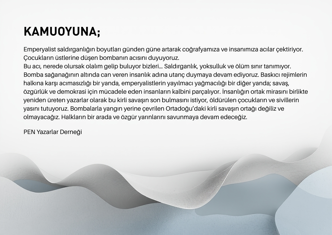 17 Ocak 2026 tarihinde PEN ofis merkezimizde gerçekleşen Olağan Genel Kurul sonucunda, Yönetim Kurulu Başkanı seçildim. Bildiğiniz gibiyirmi beş yıldır PEN Türkiye'de her kademede görev yaptım. "Hapisteki Yazarlar Komite Başkanlığı" da dahil olmak üzere çeşitli sorumluluklar aldım. 2011 yılından bu yana "İkinci Başkan" olarak görev almıştım.